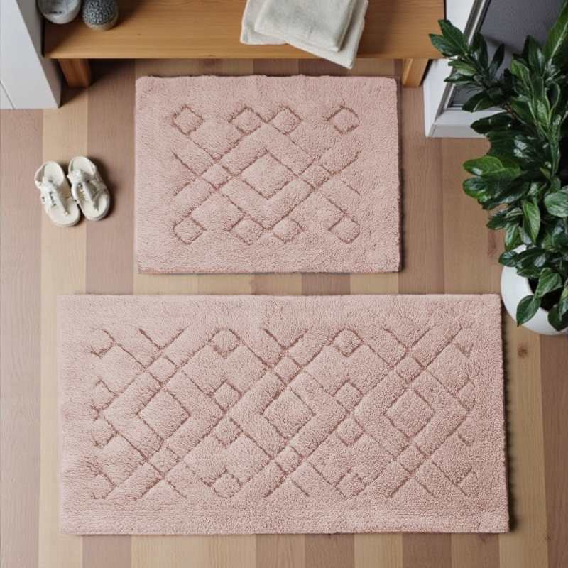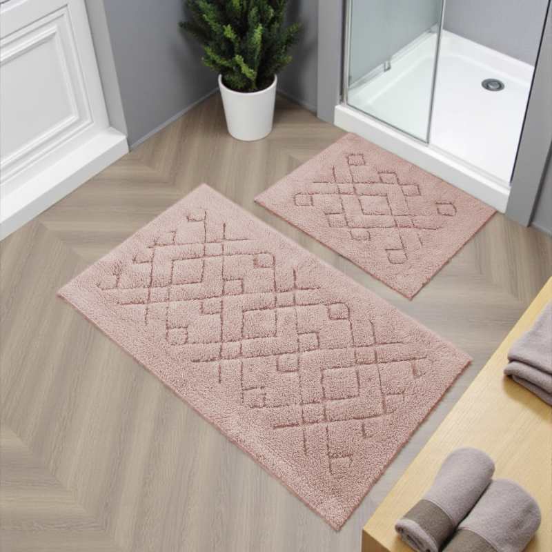 Dzięki różowym dywanikom łazienkowym, w prosty sposób wniesiesz odrobinę koloru i komfortu do łazienki. Zestaw z subtelnym wzorem wykonany z bawełny. Struktura dywanów potrafi wchłonąć wodę i utrzymać suchą podłogę w łazience.