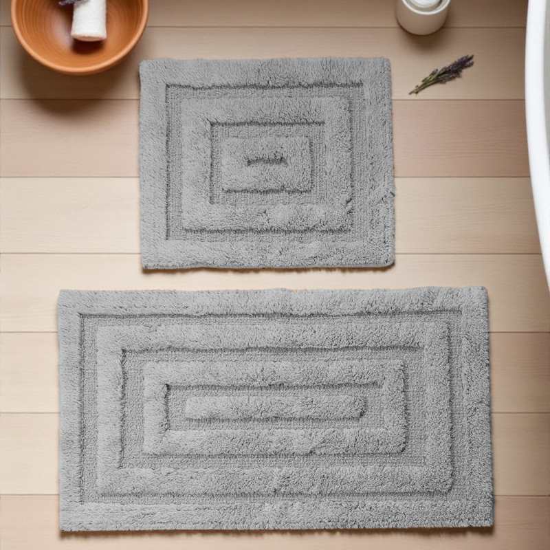 Komplet dywaników łazienkowych jest dostępny w szerokiej gamie neutralnych kolorów. Tak piękne i świetne jakościowo dywaniki do kąpieli, są niezbędny w każdej przestrzeni stylistycznej. Zestaw zawiera dwa chodniczki w rozmiarach: 50x60 i 60x100 cm.