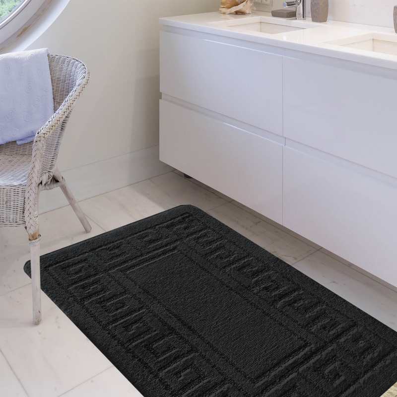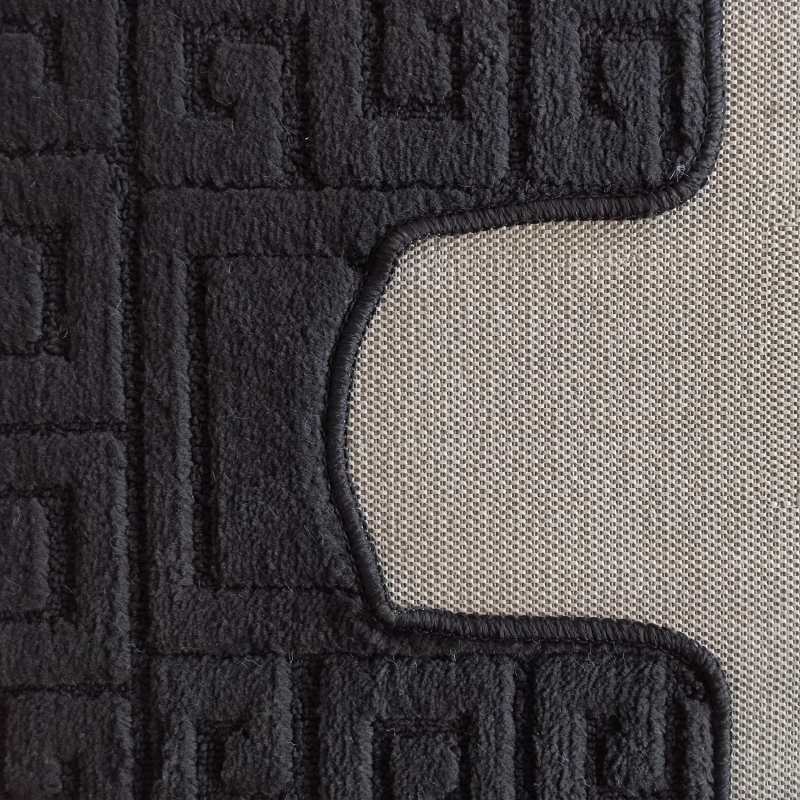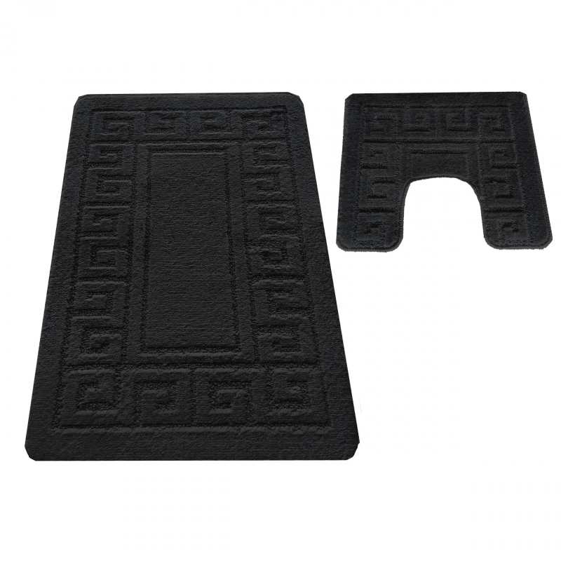 Kolekcja Monti oferuje zestaw dwóch dywaników łazienkowych w modnym i eleganckim kolorze czarnym. Mniejszy dywanik wykonany jest ze specjalnym wycięciem pod toaletę, dzięki któremu pomieszczenie wygląda estetycznie i schludnie. Spód wykonany został z antypoślizgowego podbicia, dzięki któremu nie będą się one przesuwały. Wykonane zostały z najlepszych materiałów dostępnych na rynku, które gwarantują odporność na odbarwienia i zniekształcenia. Łatwo jest również utrzymać je w czystości, dzięki możliwości prania w pralce w 30 stopniach. Doskonały dodatek do każdej łazienki urządzonej w stylu klasycznym i nowoczesnym. Na jeden komplet składają się dwa dywaniki o wymiarach: 50 cm x 80 cm oraz 40 cm x 50 cm.