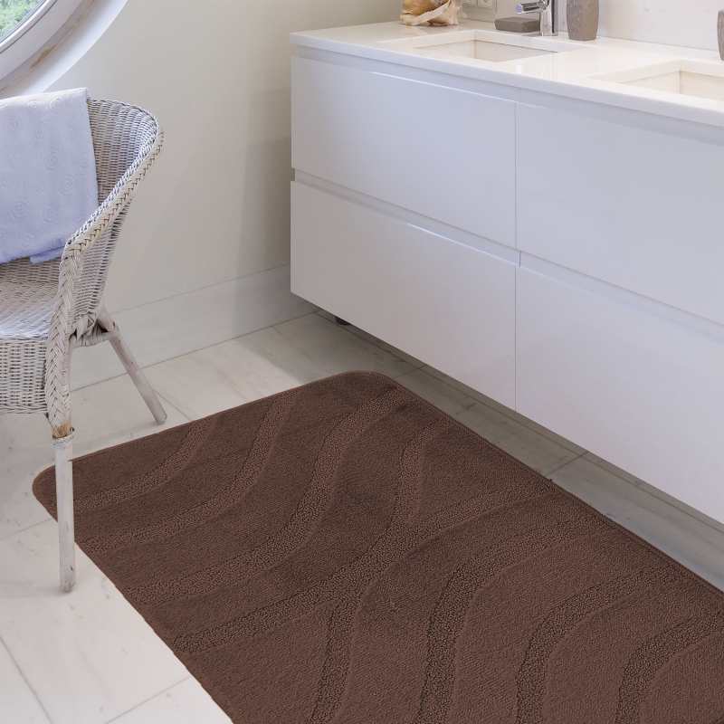 Kolekcja Monti oferuje zestaw dwóch dywaników łazienkowych w modnym i eleganckim kolorze brązowym. Mniejszy dywanik wykonany jest ze specjalnym wycięciem pod toaletę, dzięki któremu pomieszczenie wygląda estetycznie i schludnie. Spód wykonany został z antypoślizgowego podbicia, dzięki któremu nie będą się one przesuwały. Wykonane zostały z najlepszych materiałów dostępnych na rynku, które gwarantują odporność na odbarwienia i zniekształcenia. Łatwo jest również utrzymać je w czystości, dzięki możliwości prania w pralce w 30 stopniach. Doskonały dodatek do każdej łazienki urządzonej w stylu klasycznym i nowoczesnym. Na jeden komplet składają się dwa dywaniki o wymiarach: 50 cm x 80 cm oraz 40 cm x 50 cm.