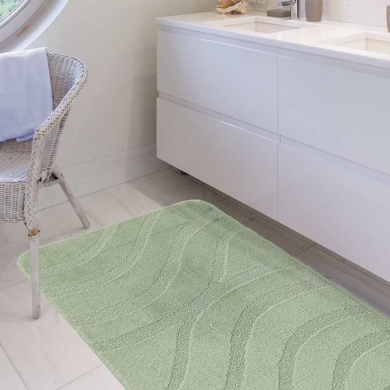 Kolekcja Monti oferuje zestaw dwóch dywaników łazienkowych w modnym i eleganckim kolorze szałwiowym. Mniejszy dywanik wykonany jest ze specjalnym wycięciem pod toaletę, dzięki któremu pomieszczenie wygląda estetycznie i schludnie. Spód wykonany został z antypoślizgowego podbicia, dzięki któremu nie będą się one przesuwały. Wykonane zostały z najlepszych materiałów dostępnych na rynku, które gwarantują odporność na odbarwienia i zniekształcenia. Łatwo jest również utrzymać je w czystości, dzięki możliwości prania w pralce w 30 stopniach. Doskonały dodatek do każdej łazienki urządzonej w stylu klasycznym i nowoczesnym. Na jeden komplet składają się dwa dywaniki o wymiarach: 50 cm x 80 cm oraz 40 cm x 50 cm.
