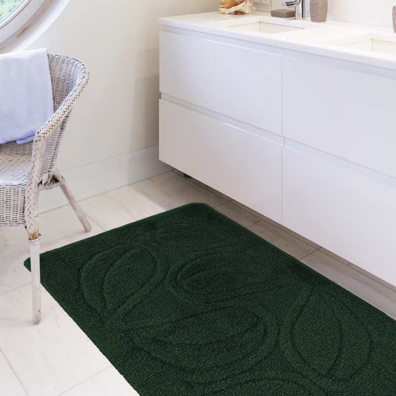 Kolekcja Monti oferuje zestaw dwóch dywaników łazienkowych w modnym i eleganckim kolorze butelkowej zieleni. Mniejszy dywanik wykonany jest ze specjalnym wycięciem pod toaletę, dzięki któremu pomieszczenie wygląda estetycznie i schludnie. Spód wykonany został z antypoślizgowego podbicia, dzięki któremu nie będą się one przesuwały. Wykonane zostały z najlepszych materiałów dostępnych na rynku, które gwarantują odporność na odbarwienia i zniekształcenia. Łatwo jest również utrzymać je w czystości, dzięki możliwości prania w pralce w 30 stopniach. Doskonały dodatek do każdej łazienki urządzonej w stylu klasycznym i nowoczesnym. Na jeden komplet składają się dwa dywaniki o wymiarach: 50 cm x 80 cm oraz 40 cm x 50 cm.