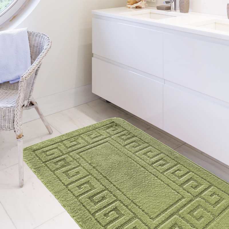 Kolekcja Monti oferuje zestaw dwóch dywaników łazienkowych w modnym i eleganckim kolorze zielonym. Mniejszy dywanik wykonany jest ze specjalnym wycięciem pod toaletę, dzięki któremu pomieszczenie wygląda estetycznie i schludnie. Spód wykonany został z antypoślizgowego podbicia, dzięki któremu nie będą się one przesuwały. Wykonane zostały z najlepszych materiałów dostępnych na rynku, które gwarantują odporność na odbarwienia i zniekształcenia. Łatwo jest również utrzymać je w czystości, dzięki możliwości prania w pralce w 30 stopniach. Doskonały dodatek do każdej łazienki urządzonej w stylu klasycznym i nowoczesnym. Na jeden komplet składają się dwa dywaniki o wymiarach: 50 cm x 80 cm oraz 40 cm x 50 cm.