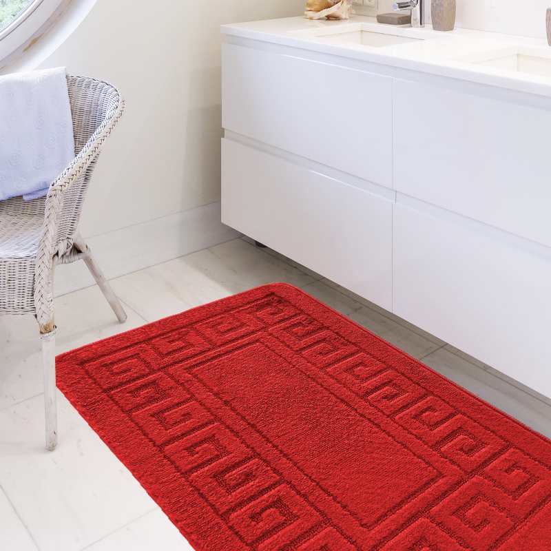 Kolekcja Monti oferuje zestaw dwóch dywaników łazienkowych w modnym i eleganckim kolorze czerwonym. Mniejszy dywanik wykonany jest ze specjalnym wycięciem pod toaletę, dzięki któremu pomieszczenie wygląda estetycznie i schludnie. Spód wykonany został z antypoślizgowego podbicia, dzięki któremu nie będą się one przesuwały. Wykonane zostały z najlepszych materiałów dostępnych na rynku, które gwarantują odporność na odbarwienia i zniekształcenia. Łatwo jest również utrzymać je w czystości, dzięki możliwości prania w pralce w 30 stopniach. Doskonały dodatek do każdej łazienki urządzonej w stylu klasycznym i nowoczesnym. Na jeden komplet składają się dwa dywaniki o wymiarach: 50 cm x 80 cm oraz 40 cm x 50 cm.
