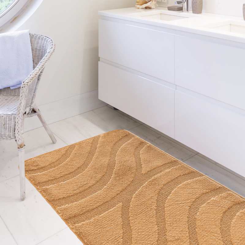 oferuje zestaw dwóch dywaników łazienkowych w modnym i eleganckim kolorze brzoskwiniowym. Mniejszy dywanik wykonany jest ze specjalnym wycięciem pod toaletę, dzięki któremu pomieszczenie wygląda estetycznie i schludnie. Spód wykonany został z antypoślizgowego podbicia, dzięki któremu nie będą się one przesuwały. Wykonane zostały z najlepszych materiałów dostępnych na rynku, które gwarantują odporność na odbarwienia i zniekształcenia. Łatwo jest również utrzymać je w czystości, dzięki możliwości prania w pralce w 30 stopniach. Doskonały dodatek do każdej łazienki urządzonej w stylu klasycznym i nowoczesnym. Na jeden komplet składają się dwa dywaniki o wymiarach: 50 cm x 80 cm oraz 40 cm x 50 cm.
