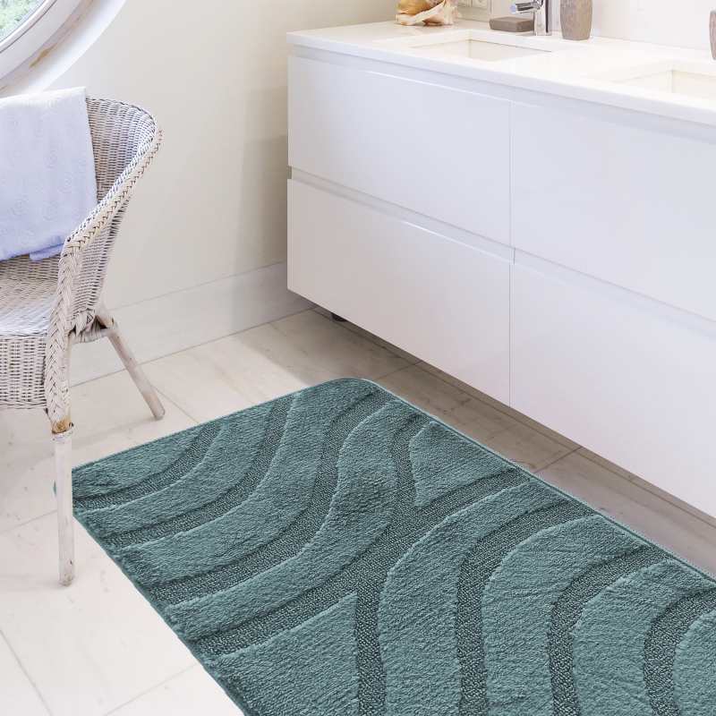 Kolekcja Monti oferuje zestaw dwóch dywaników łazienkowych w modnym i eleganckim kolorze turkusowym. Mniejszy dywanik wykonany jest ze specjalnym wycięciem pod toaletę, dzięki któremu pomieszczenie wygląda estetycznie i schludnie. Spód wykonany został z antypoślizgowego podbicia, dzięki któremu nie będą się one przesuwały. Wykonane zostały z najlepszych materiałów dostępnych na rynku, które gwarantują odporność na odbarwienia i zniekształcenia. Łatwo jest również utrzymać je w czystości, dzięki możliwości prania w pralce w 30 stopniach. Doskonały dodatek do każdej łazienki urządzonej w stylu klasycznym i nowoczesnym. Na jeden komplet składają się dwa dywaniki o wymiarach: 50 cm x 80 cm oraz 40 cm x 50 cm.