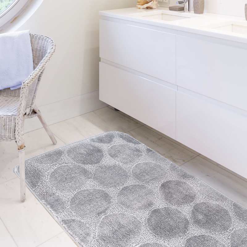Kolekcja Monti oferuje zestaw dwóch dywaników łazienkowych w modnym i eleganckim kolorze szarym. Mniejszy dywanik wykonany jest ze specjalnym wycięciem pod toaletę, dzięki któremu pomieszczenie wygląda estetycznie i schludnie. Spód wykonany został z antypoślizgowego podbicia, dzięki któremu nie będą się one przesuwały. Wykonane zostały z najlepszych materiałów dostępnych na rynku, które gwarantują odporność na odbarwienia i zniekształcenia. Łatwo jest również utrzymać je w czystości, dzięki możliwości prania w pralce w 30 stopniach. Doskonały dodatek do każdej łazienki urządzonej w stylu klasycznym i nowoczesnym. Na jeden komplet składają się dwa dywaniki o wymiarach: 50 cm x 80 cm oraz 40 cm x 50 cm.