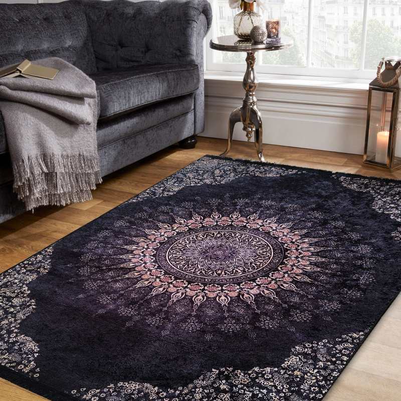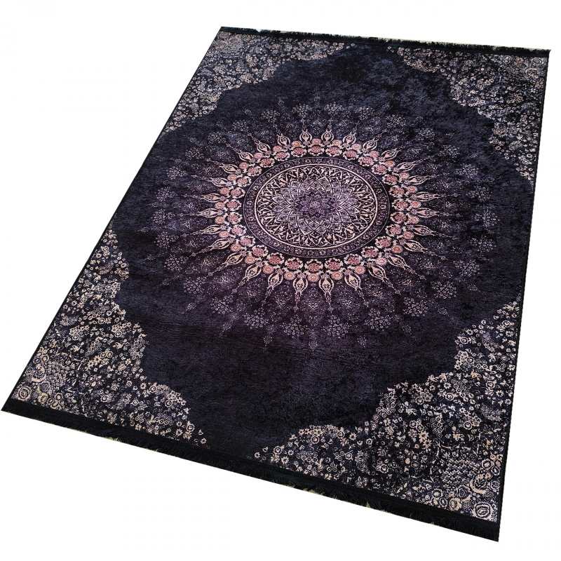 Nowoczesny, czarny dywan z motywem klasycznym rozeta nigdy nie wychodzi z mody. Wzory klasyczne w dywanach mają wielu zwolenników i patrząc na nasz piękny, w każdym detalu dywan to nic dziwnego. Połączyliśmy bogato zdobiony wzór dywanu z jego nowoczesnym wykonaniem, teraz każdy może cieszyć się jego urokiem w swoim domu. Ten modny dywan jest lekki, antypoślizgowy i można wyprać go w pralce w 30 stopniach, nie tracąc nic na jakości. Przepiękny czarny dywan będzie idealnym dodatkiem jako dywan do salonu, dywan do sypialni czy nawet do pokoju młodzieżowego. Ze względu na swoje cienkie właściwości, dywan ten może miec również zastosowanie jako makata na ścianę czy bieżnik na stół. Dywan posiada frędzle.