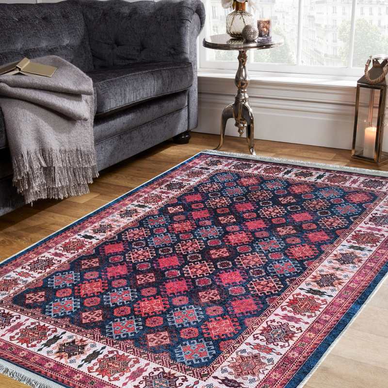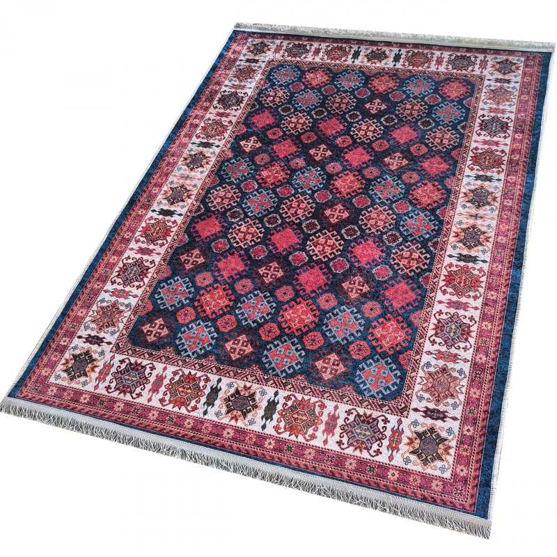 Nowoczesny, wielokolorowy dywan z motywem etnicznym nigdy nie wychodzi z mody. Wzory klasyczne w dywanach mają wielu zwolenników i patrząc na nasz piękny, w każdym detalu dywan to nic dziwnego. Połączyliśmy bogato zdobiony wzór dywanu z jego nowoczesnym wykonaniem, teraz każdy może cieszyć się jego urokiem w swoim domu. Ten modny dywan jest lekki, antypoślizgowy i można wyprać go w pralce w 30 stopniach, nie tracąc nic na jakości. Będzie idealnym dodatkiem jako dywan do salonu, dywan do sypialni czy nawet do pokoju młodzieżowego. Ze względu na swoje cienkie właściwości, dywan ten może miec również zastosowanie jako makata na ścianę czy bieżnik na stół. Posiada frędzle.