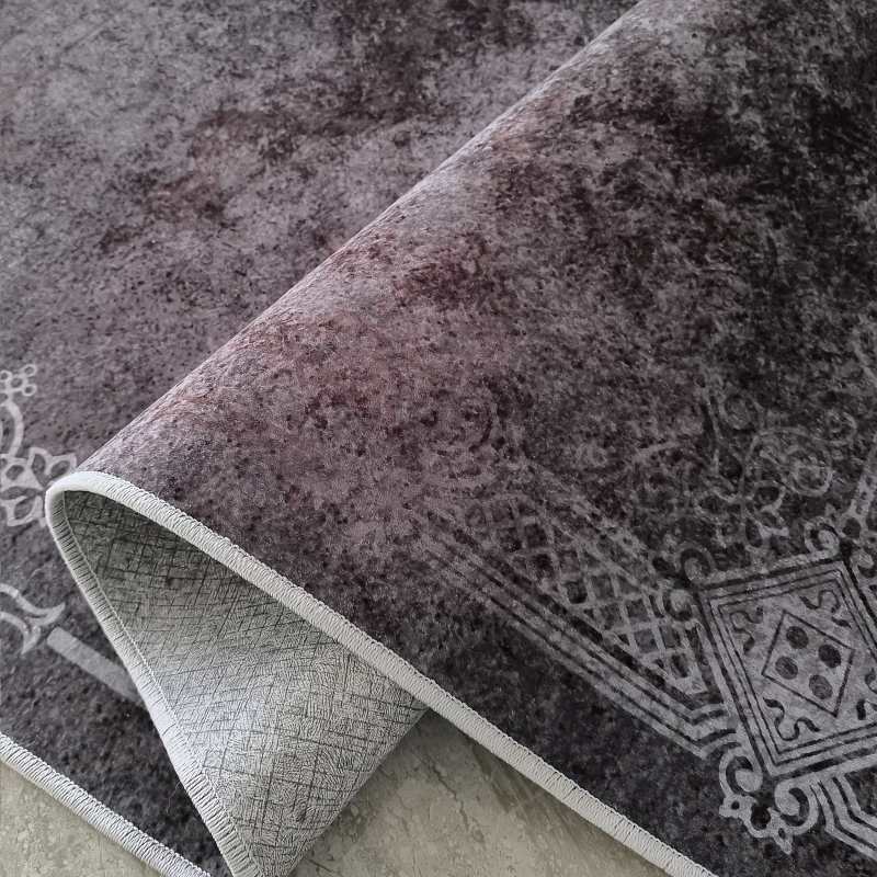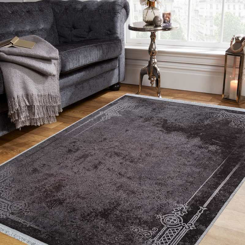 Nowoczesny, szary dywan nigdy nie wychodzi z mody. Połączyliśmy bogato zdobiony wzór dywanu z jego nowoczesnym wykonaniem, teraz każdy może cieszyć się jego urokiem w swoim domu. Wzór wyglądem przypomina fragment postarzałej, miedzianej blachy lub surowej, betonowej ściany z resztkami klasycznego tynku. Ten modny dywan jest lekki, antypoślizgowy i można wyprać go w pralce w 30 stopniach, nie tracąc nic na jakości. Będzie idealnym dodatkiem jako dywan do salonu, dywan do sypialni czy nawet do pokoju młodzieżowego. Ze względu na swoje cienkie właściwości, dywan ten może miec również zastosowanie jako makata na ścianę czy bieżnik na stół. Posiada frędzle.